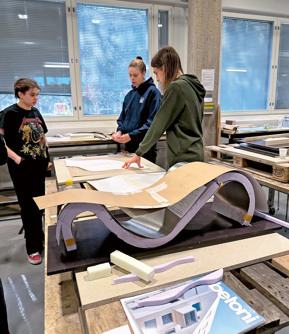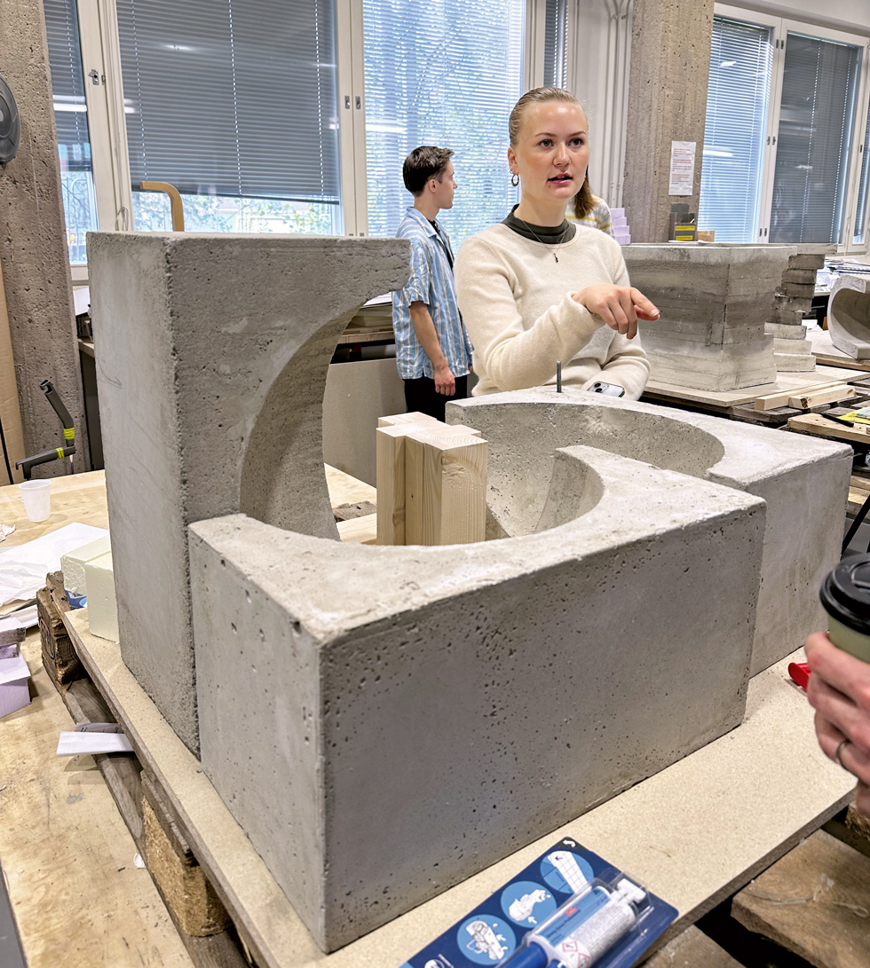 Aalto-yliopiston arkkitehtuurin laitoksella perusopintoihin kuuluu yleisimpiin rakennusmateriaaleihin tutustuminen luentojen ja erilaisten harjoitustöiden kautta. Keväällä 2025 kestävän rakentamisen professuurin kurssilla opiskelijat tutustuivat betoniin, sen rakenteellisiin ja materiaali- sekä erityisominaisuuksiin.