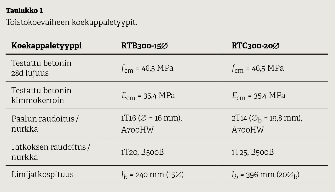 Tutkimusvaiheessa valmistettiin 19 koepaalua suoriin vetokokeisiin. Vetokoekappaleiden välillä varioitiin limijatkospituutta, hakaraudoitteen tyyppiä ja määrää, paalun pääterästen betonipeitettä sekä jatkoksen tartuntaterästen betonipeitettä ja tyyppiä. Yksi koekappaleista vastasi limijatkospituutta lukuunottamatta ominaisuuksiltaan mahdollisimman hyvin RTB-300-16 tuotantopaalun poikkileikkausta, ja toimi siten useimmissa koesarjoissa täydentävänä vertailukappaleena.