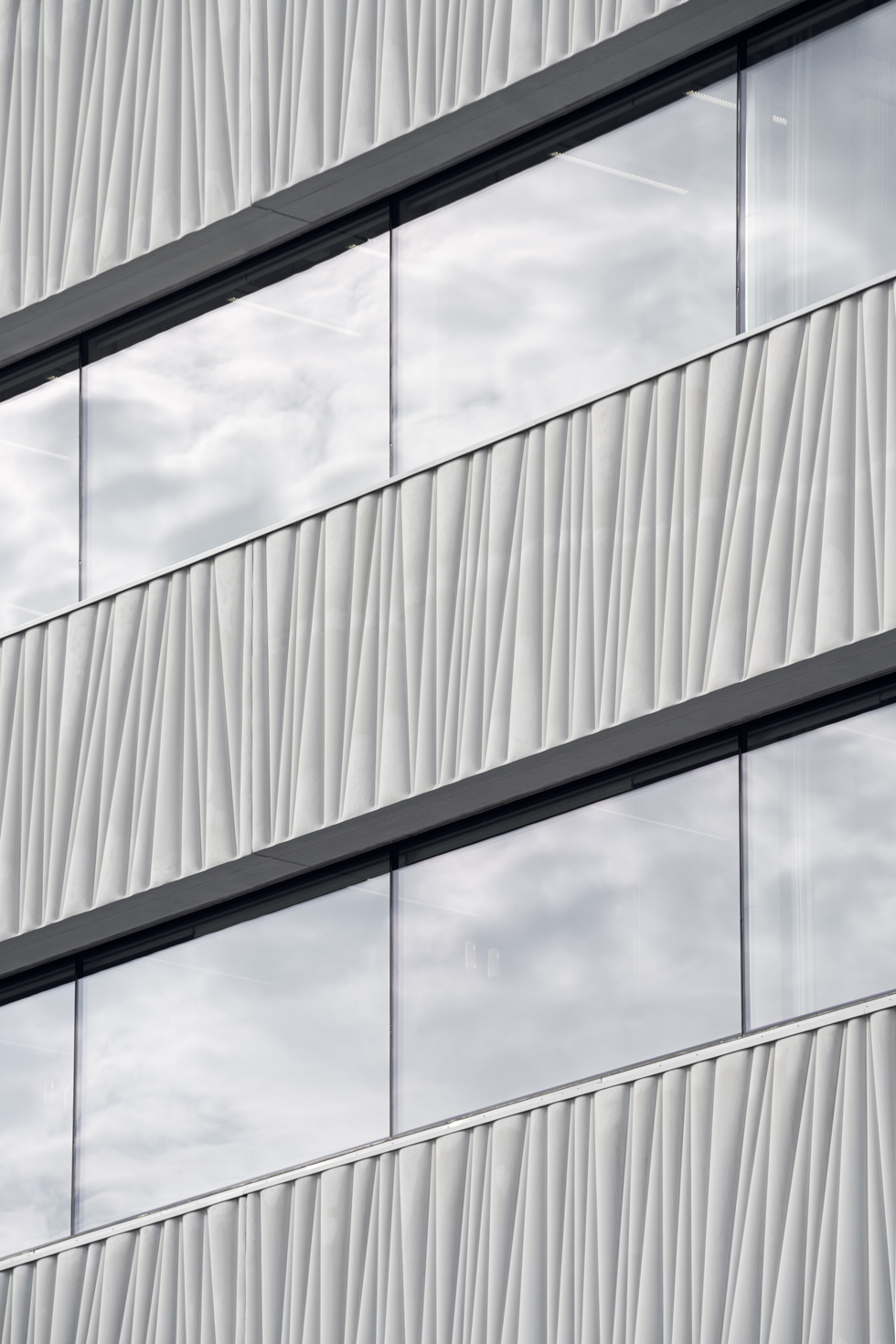 Suorakulmaisen rakennuksen peruskerrosten julkisivut ovat vaaleaa muotobetonia ja lasia. ”Pelkistetyn julkisivun ansiot ovat kauttaaltaan määrätietoisissa, yhtenäisissä valinnoissa ja loppuun asti viedyssä detaljisuunnittelussa. Rakennuksen julkisivun laatuvaikutelma perustuu muutamaan avaindetaljiin, joista keskeisimmät ovat betonielementin poikkileikkausmuoto ja pintalistaton nauhaikkuna liitoksineen”, toteaa tuomaristo perusteluissaan.