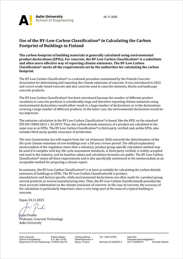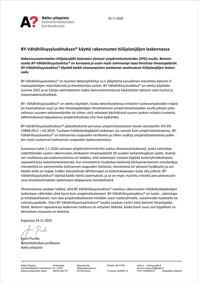 BY-Vähähiilisyysluokituksen EPD-vastaavuus